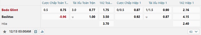Bảng tỷ lệ kèo bóng đá Bodo Glimt vs Besiktas