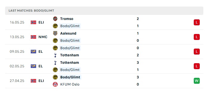 • Phong độ gần đây Bodo/Glimt