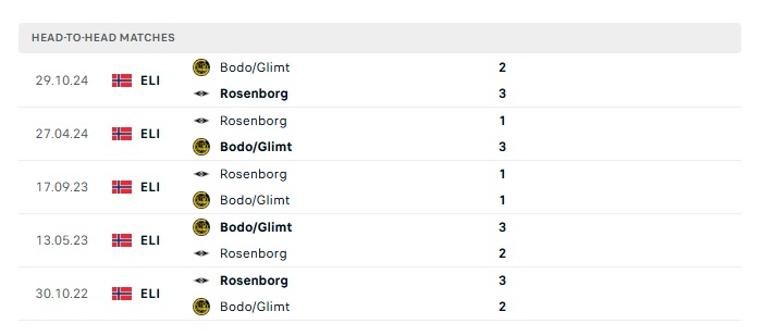 Lịch sử đối đầu Bodo/Glimt vs Rosenborg