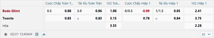 Bảng tỷ lệ kèo bóng đá Bodo Glimt vs Twente
