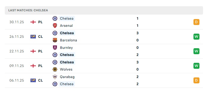 - Phong độ gần đây Chelsea