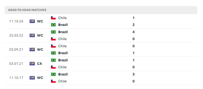 Phong độ gần đây Brazil  vs Chile