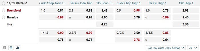 Soi kèo châu Á, kèo Brentford vs Burnley