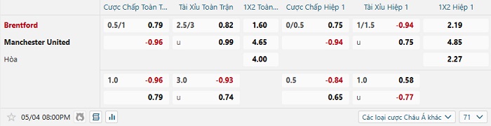 Soi kèo châu Á, kèo Brentford vs Man Utd
