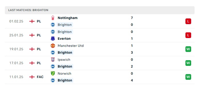 - Phong độ gần đây Brighton