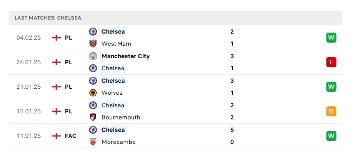 - Phong độ gần đây Chelsea