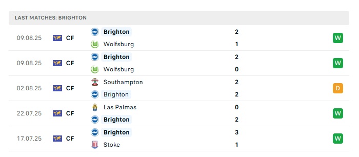 Trong thời gian qua, cả hai đều đã có phong độ thi đấu tốt trong giai đoạn giao hữu tiền mùa giải. Trong 5 trận gần nhất với Brighton, họ chỉ có 1 hòa và còn lại là 4 trận toàn thắng. Trong khi đó thì Fulham cũng không kém cạnh so với đối thủ khi đã thắng 4 và thua 1 trong 5 trận gần nhất. Do đó, dù tự tin nhưng chủ nhà cũng chỉ có thể thắng với kết quả tối thiểu trước đối thủ.