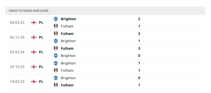 - Kèo tỷ số H2 Brighton vs Fulham: 2-1