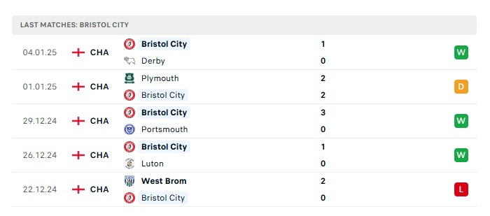 - Phong độ gần đây Bristol City
