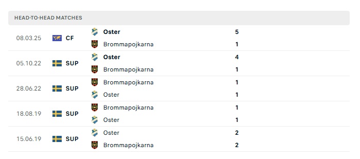 Lịch sử đối đầu Brommapojkarna vs Oster