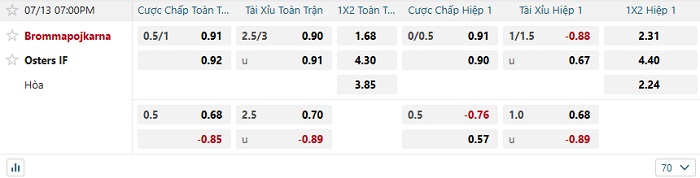 Soi kèo châu Á, kèo Brommapojkarna vs Oster