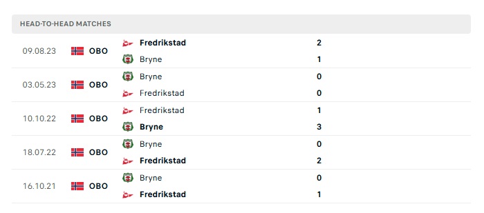 Lịch sử đối đầu Bryne vs Fredrikstad