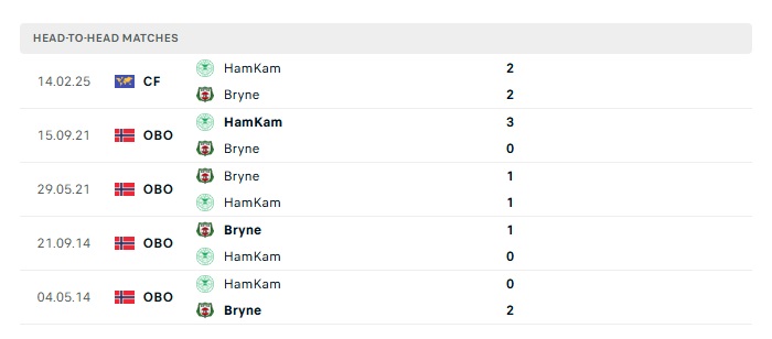 Lịch sử đối đầu Bryne vs Ham Kam