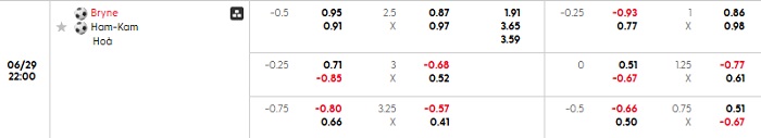Bảng tỷ lệ kèo bóng đá hôm nay Bryne vs Ham Kam