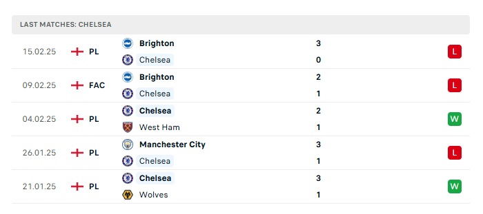 - Phong độ gần đây Chelsea