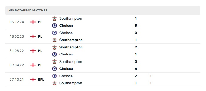 Lịch sử đối đầu Chelsea vs Southampton