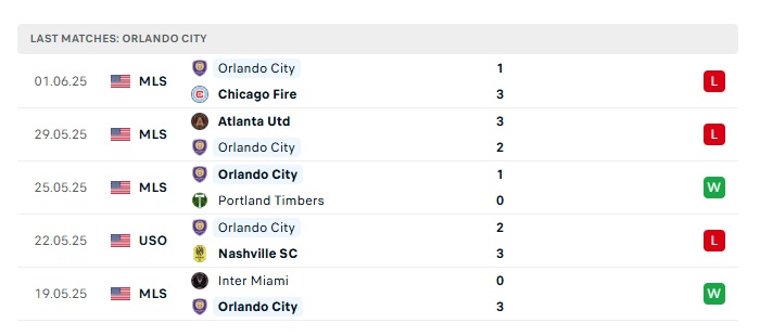 Phong độ gần đây Colorado Rapids  vs Orlando City
