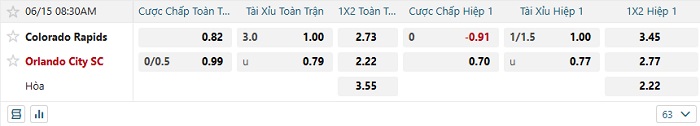 Bảng tỷ lệ kèo bóng đá Colorado Rapids vs Orlando City