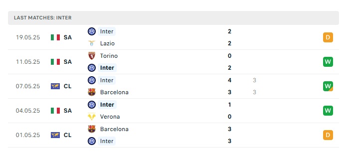 - Phong độ gần đây Inter Milan