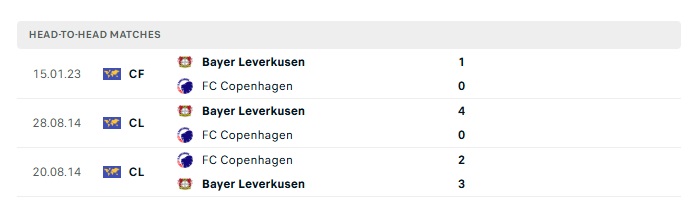 Lịch sử đối đầu Copenhagen vs Bayer Leverkusen
