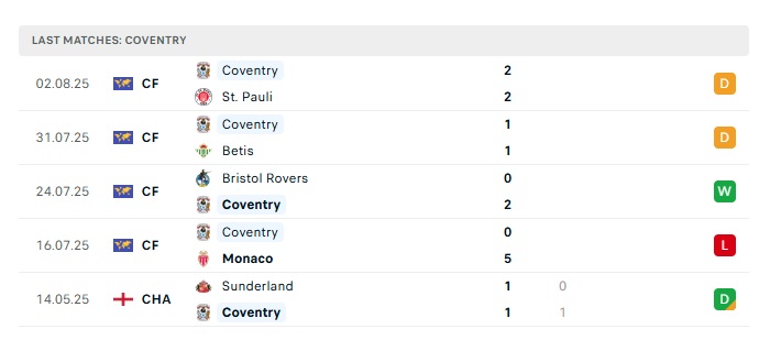 - Phong độ gần đây Coventry