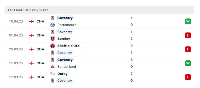 Hiện tại, hai đội không có sự chênh lệch nào quá lớn về phong độ thi đấu trong thời gian qua. Cụ thể hơn thì trong 7 trận đấu gần nhất, Coventry chỉ có 3 trận thua và còn lại là 4 chiến thắng. Trong khi đó thì West Brom lúc này đang có 3 chiến thắng, 3 hòa và 3 thua trong 9 trận gần nhất. Như vậy thì xét về chuyên môn, Coventry vẫn sẽ đủ sức có cho mình 1 chiến thắng tối thiểu trước đối thủ.