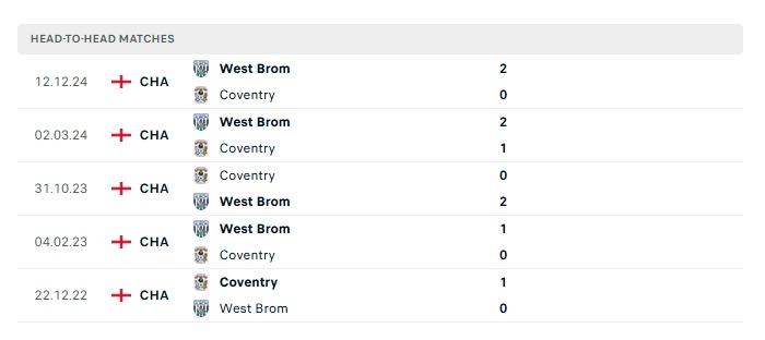- Kèo tỷ số H2 Coventry vs West Brom: 1-0