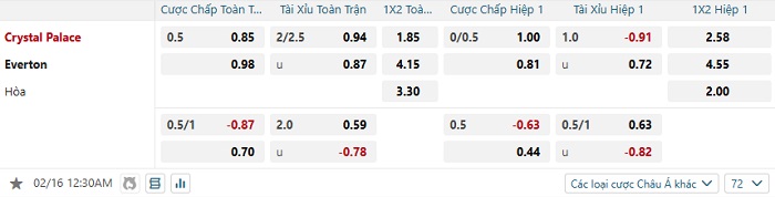 Soi kèo châu Á, kèo Crystal Palace vs Everton