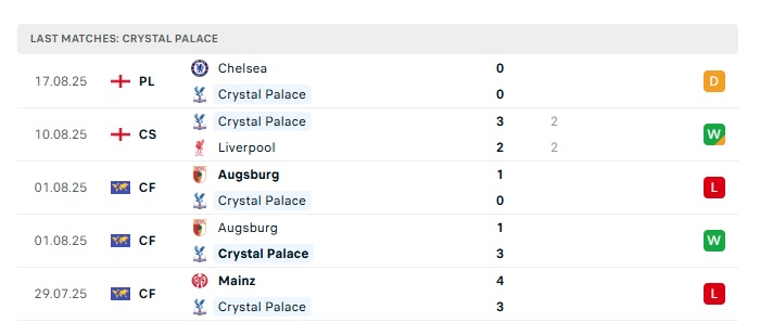 Phong độ gần đây Crystal Palace vs Nottingham Forest