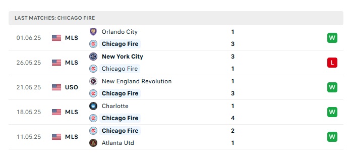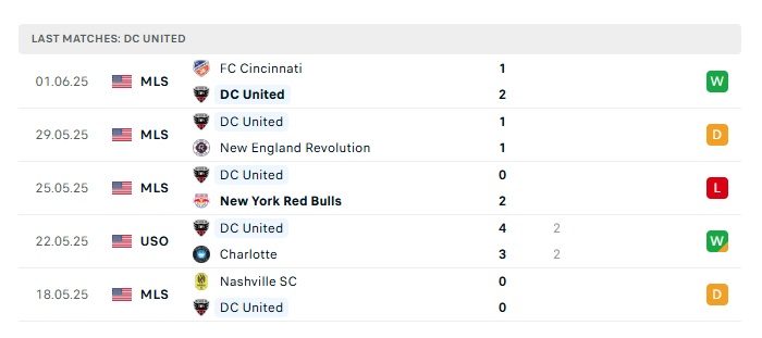 Phong độ gần đây D.C. Utd vs Chicago Fire