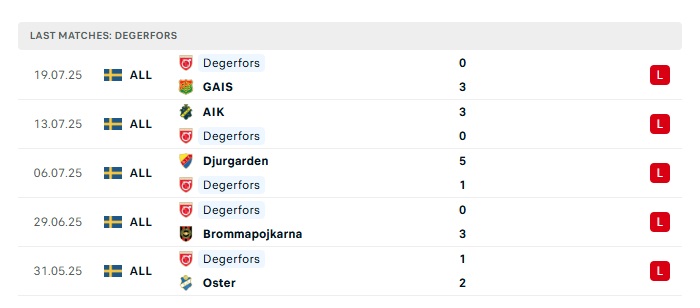 • Phong độ gần đây Degerfors IF