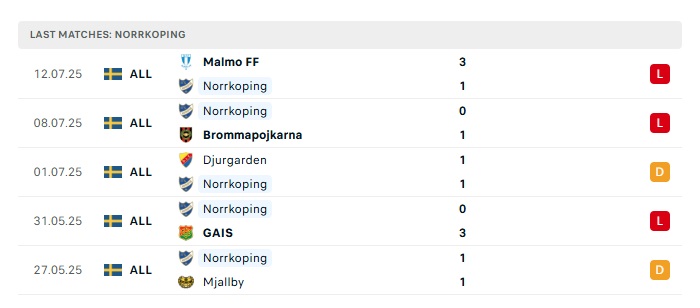 • Phong độ gần đây Norrkoping