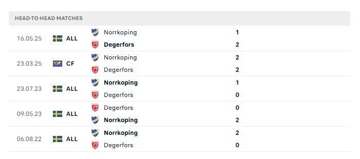 Lịch sử đối đầu Degerfors IF vs Norrkoping