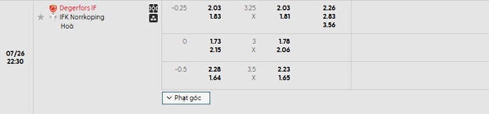 Soi kèo châu Á, kèo Degerfors IF vs Norrkoping