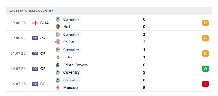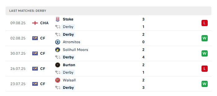 Theo ghi nhận thì trong giai đoạn tiền mùa giải, Derby County đã có những kết quả thi đấu giao hữu rất tốt. Cụ thể, trước khi thua 3-1 trước Stoke City, họ đã có 4 thắng và chỉ thua 1 trong 5 lần ra sân giao hữu. Tuy nhiên, Coventry dù hòa Hull nhưng trước đó họ chỉ thắng 1, hòa 2 và thua 2. Rõ ràng điều đó chứng minh sự bất ổn vô cùng lớn của Derby County dù đã chuẩn bị rất kỹ càng.