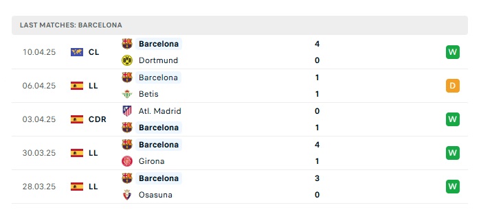 Hiện tại, phong độ thi đấu của hai đội cũng đang có sự chênh lệch tương đối lớn. Trong 6 trận đấu gần nhất của Dortmund họ được ghi nhận chỉ có 3 trận thắng và 3 trận toàn thua. Trong khi đó thì Barcelona lúc này đang bất bại 10 trận đấu gần nhất với 8 chiến thắng và chỉ hòa 2 trận. Do đó, các chuyên gia đều tin rằng đội khách ngày hôm nay sẽ khép lại với 1 chiến thắng dành cho Barcelona.