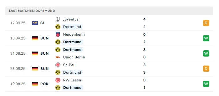 • Phong độ gần đây Dortmund