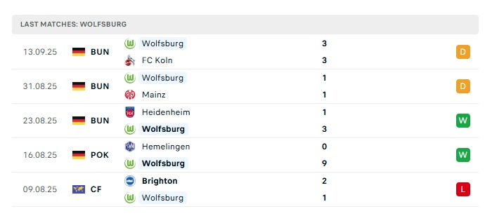 • Phong độ gần đây Wolfsburg