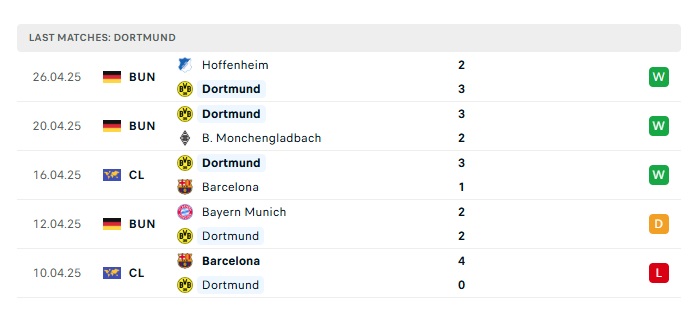 • Phong độ gần đây Dortmund