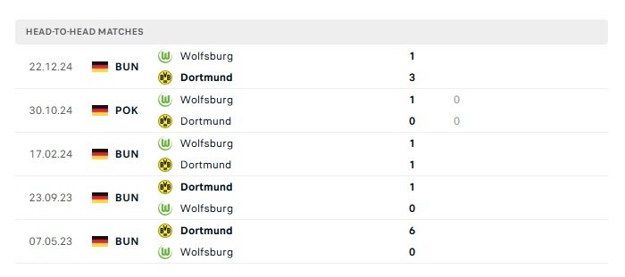 Phong độ gần đây Dortmund vs Wolfsburg
