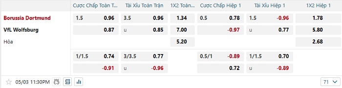Bảng tỷ lệ kèo nhà cái Dortmund vs Wolfsburg