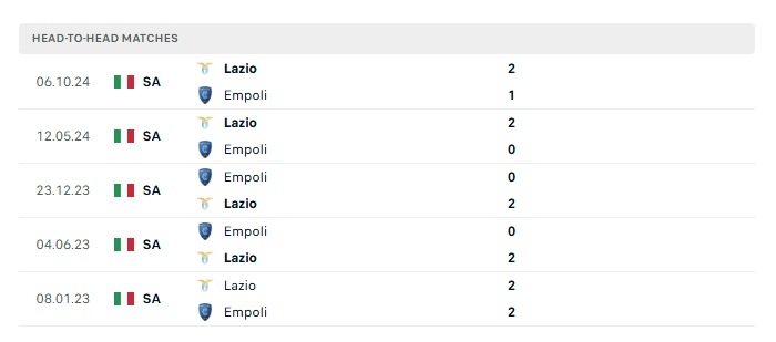 Lịch sử đối đầu Empoli vs Lazio