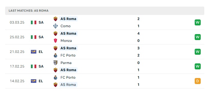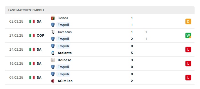 Hiện tại, phong độ thi đấu của Empoli chắc chắn là thua xa so với đối thủ Roma trong thời gian qua. Trong 10 trận đấu gần nhất của Empoli, họ đang chỉ có 1 thắng, 3 hòa và 6 thua trước đối thủ. Trong khi đó thì Roma hiện đang có chuỗi 6 trận liên tiếp bất bại cùng 5 chiến thắng và chỉ hòa 1. Do đó, đội khách chắc chắn sẽ dễ dàng đánh bại đối thủ trong ngày thi đấu hôm nay.