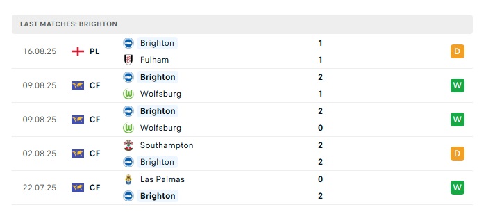 - Phong độ gần đây Brighton