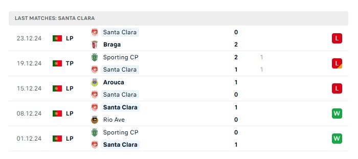 - Phong độ gần đây Santa Clara
