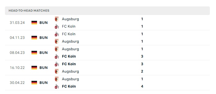 • Kèo tỷ số H2 FC Koln vs Augsburg: 2-1
