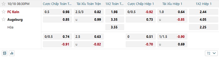 Soi kèo châu Á, kèo FC Koln vs Augsburg
