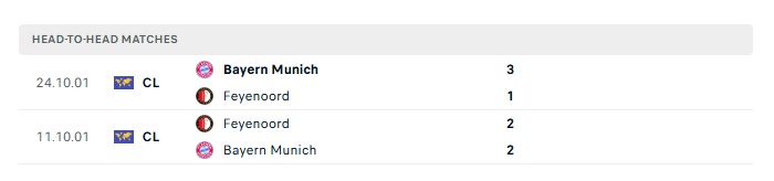 Lịch sử đối đầu Feyenoord vs Bayern Munich