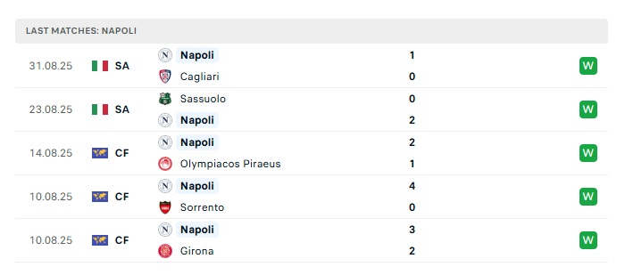 Với phong độ thăng hoa trong thời gian qua, Napoli chắc chắn sẽ chọn cho mình 1 chiến thắng trọn vẹn trước Fiorentina. Cần phải nhấn mạnh lại rằng Napoli đang có chuỗi 5 trận đấu liên tiếp thắng thắng thời gian qua. Không chỉ vậy, trong 6 lần gặp nhau gần nhất của cả hai, Napoli đã thắng 4, hòa 1 và chỉ thua 1. Do đó, kèo châu Âu trận đấu này sẽ khép lại với Napoli là lựa chọn an toàn nhất.