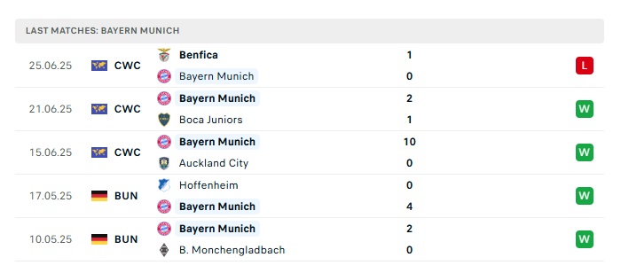 - Phong độ gần đây Bayern Munich